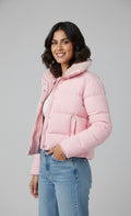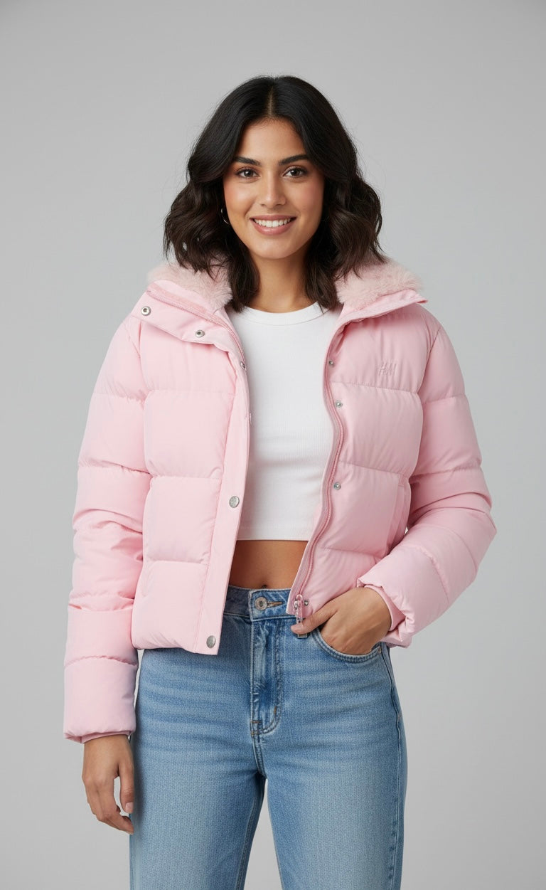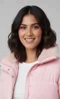 Stay warm without compromising on style. This blush pink quilted puffer jacket features a soft, cozy inner lining with a lightweight yet insulating design.