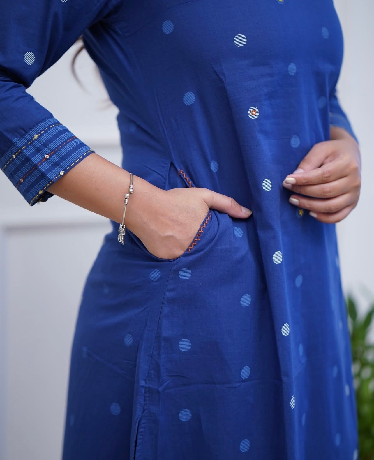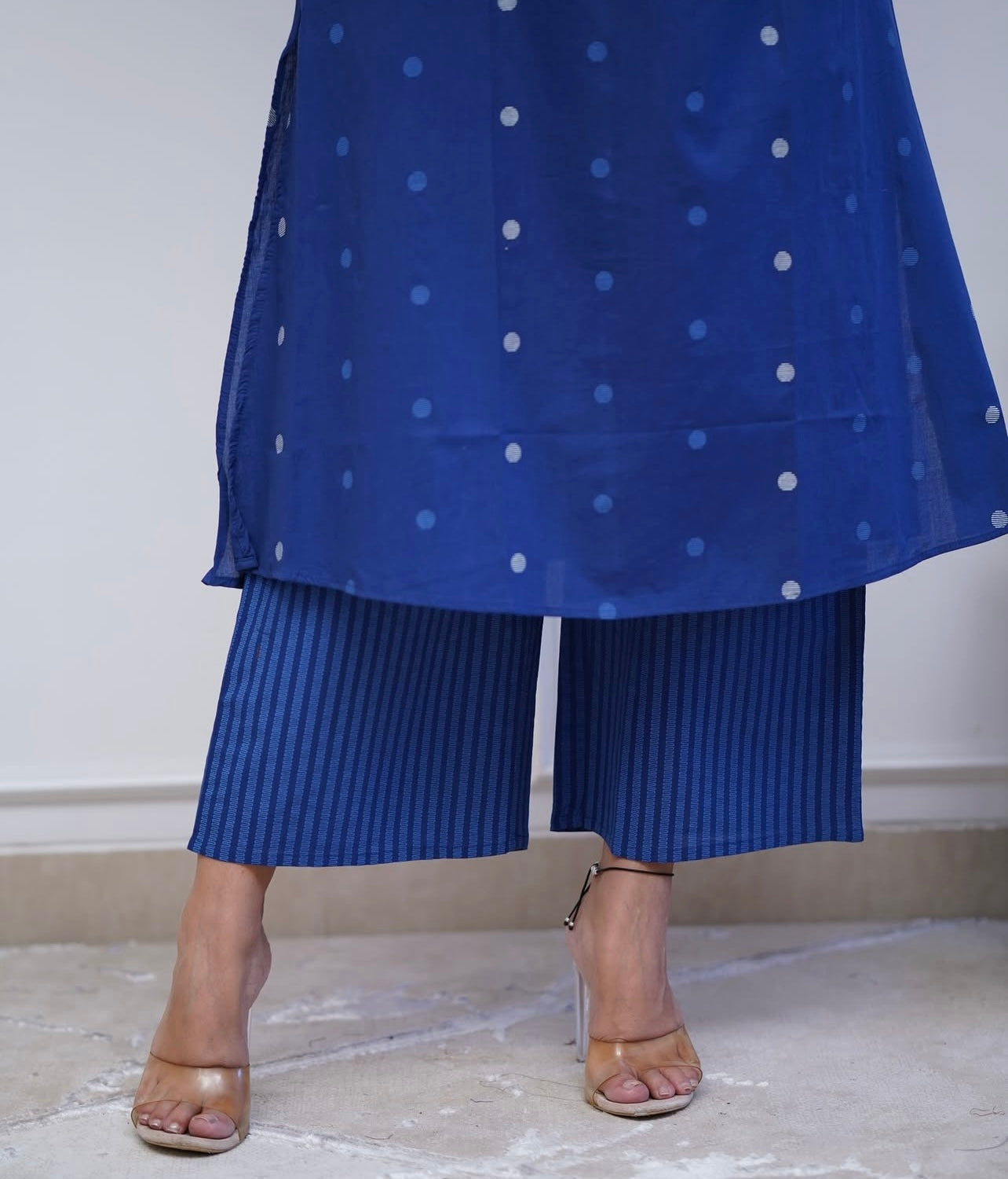 Pure cotton suit paired with comfy palazzos and a handy side pocket — because style should always come with comfort !
