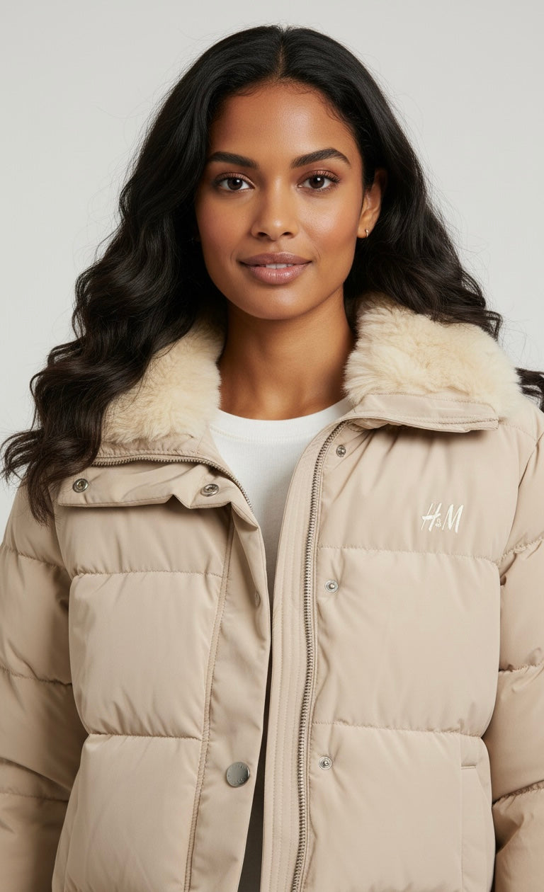 Stay warm without compromising on style. This beige puffer jacket features a cozy padded silhouette with a soft inner lining for all-day comfort.