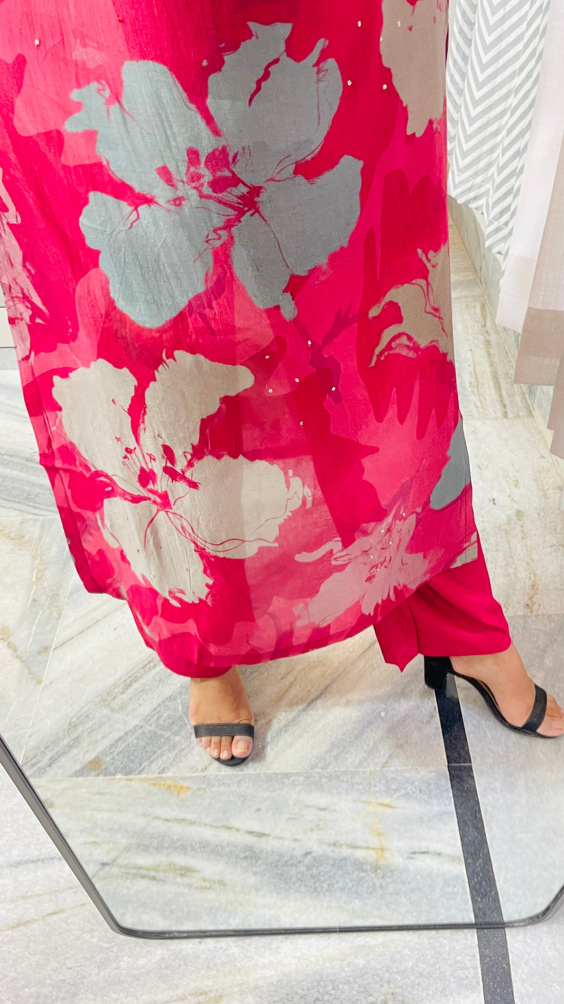 This floral print kurta set, featuring subtle sequin work on the V-neck, is your go-to for everyday elegance. Light, breezy and effortlessly stylish !!