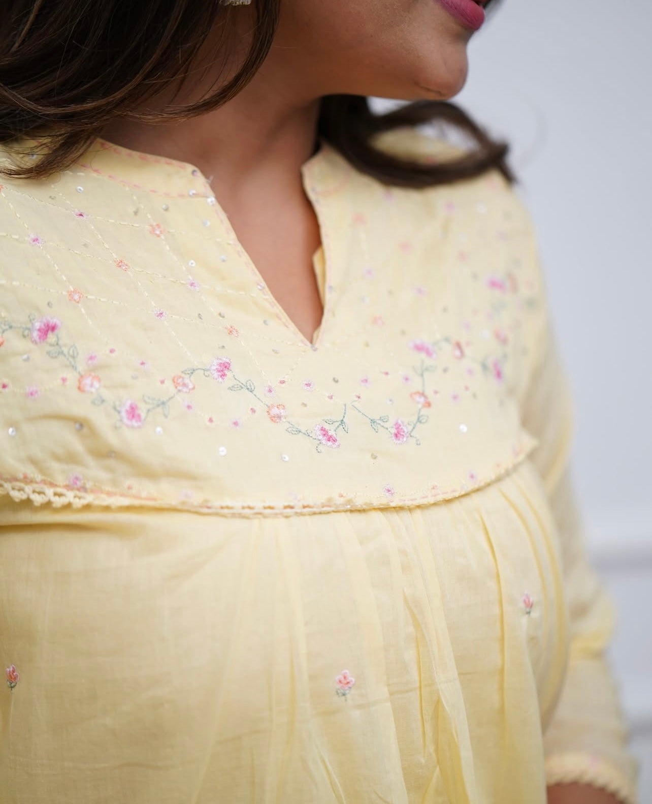 Introducing our lime yellow kurta pant set, crafted in soft, breathable cotton with a comfortable lining inside for a flawless fit.