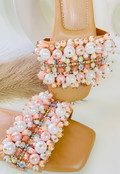 Peach Pearl Embellished Slides
