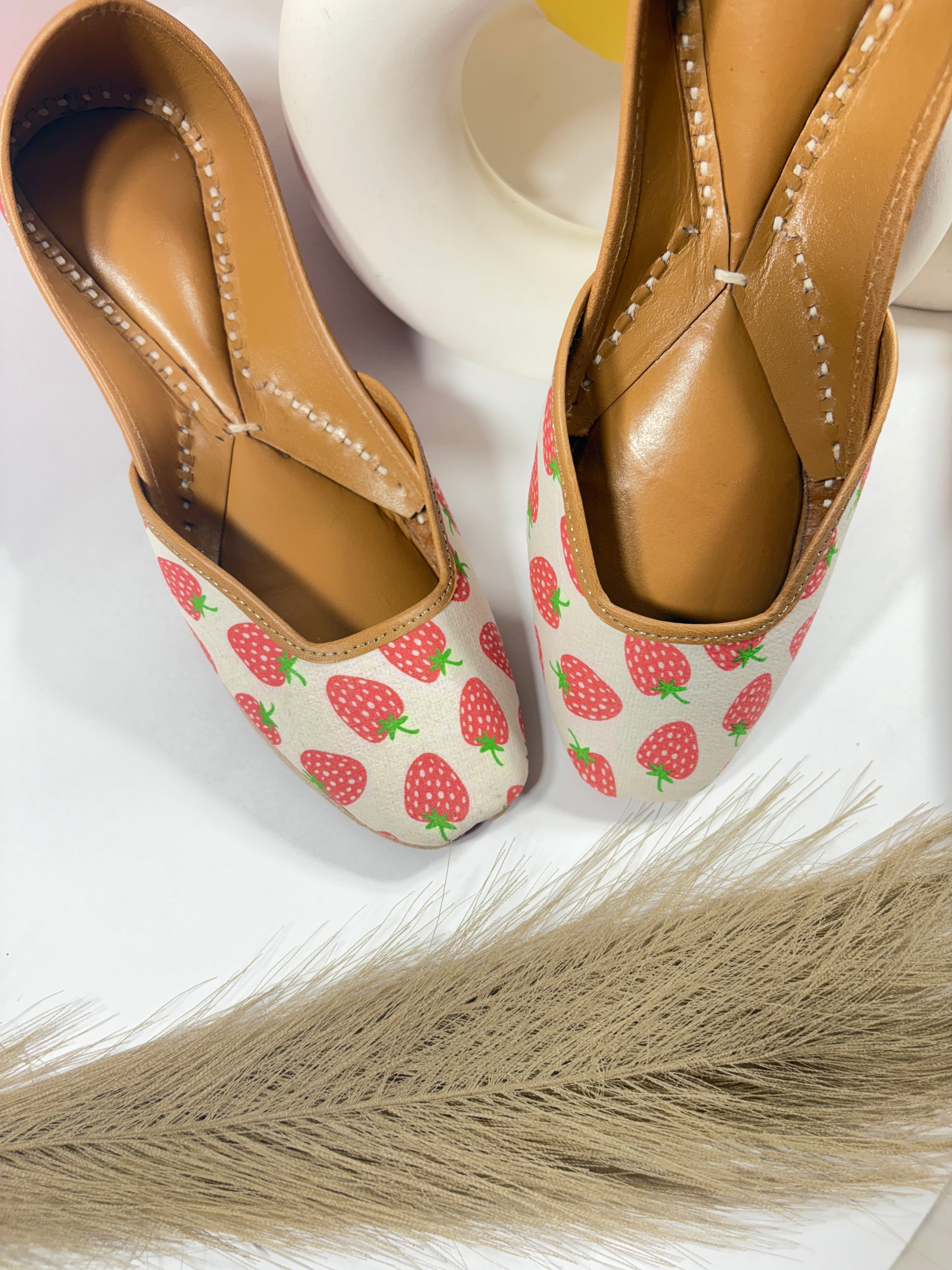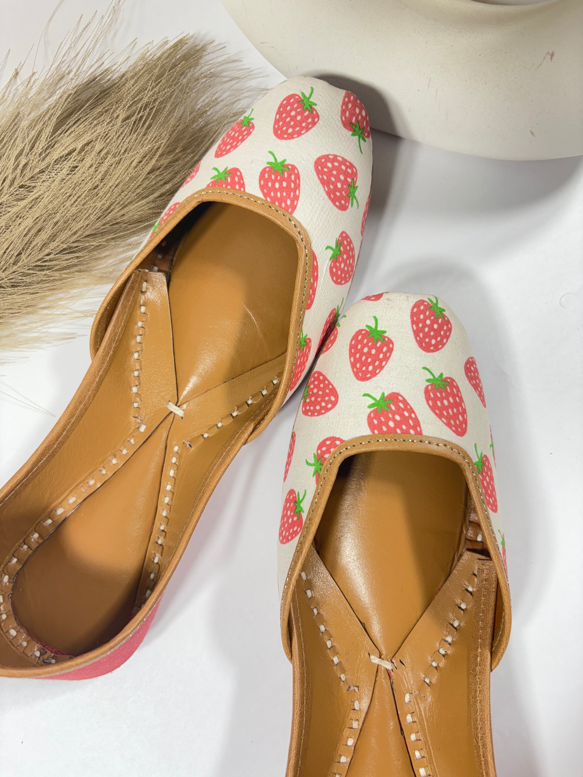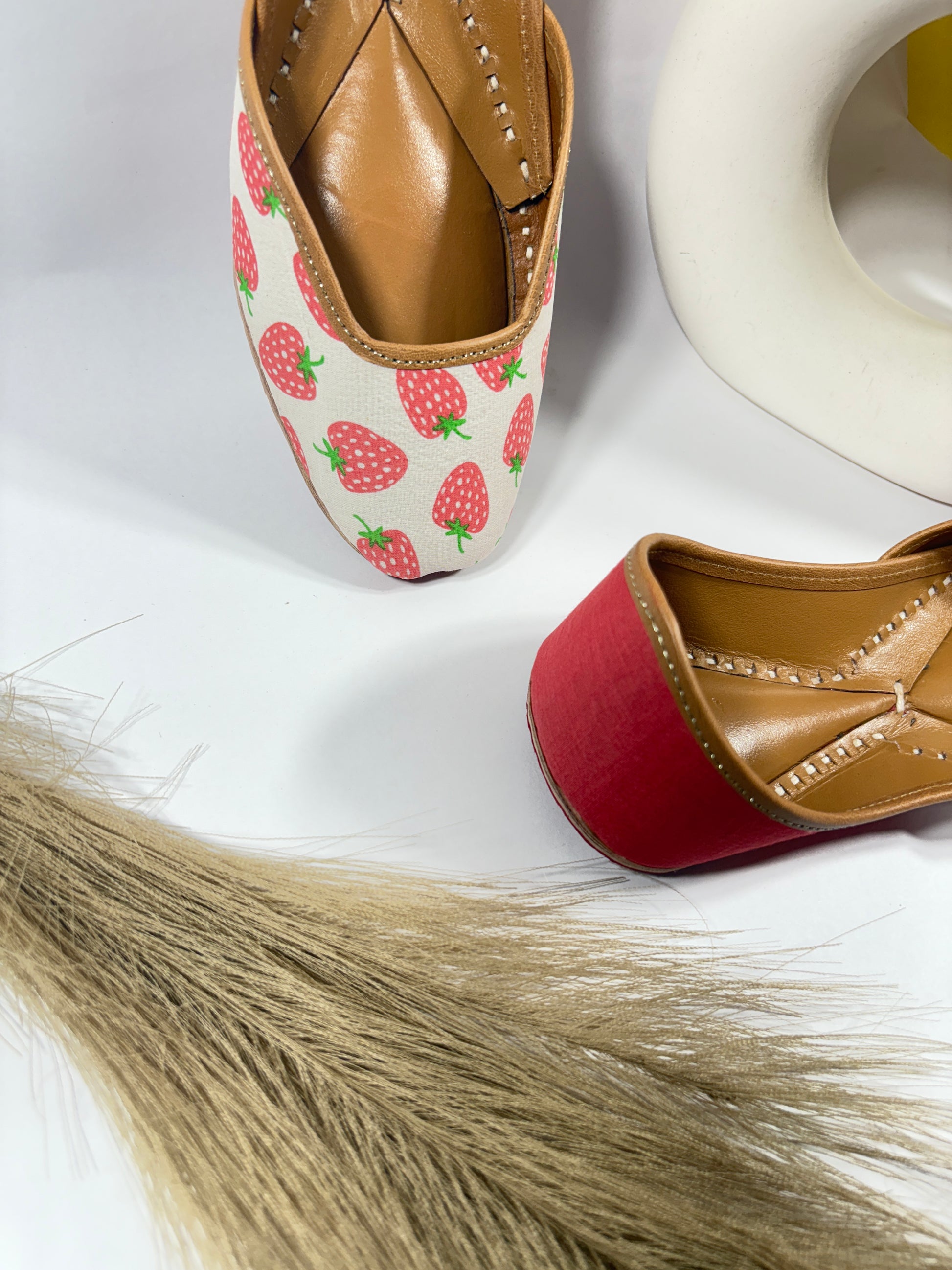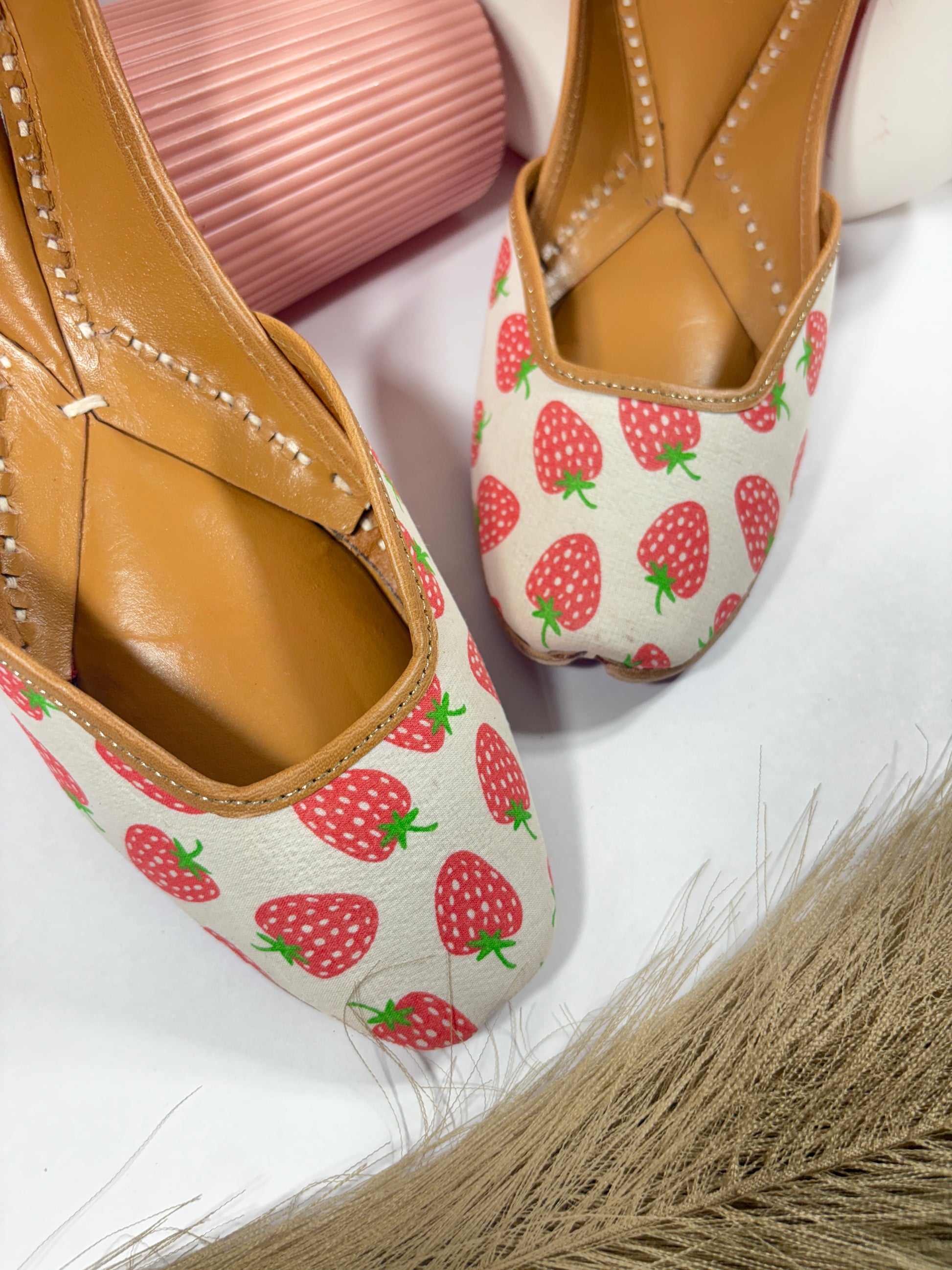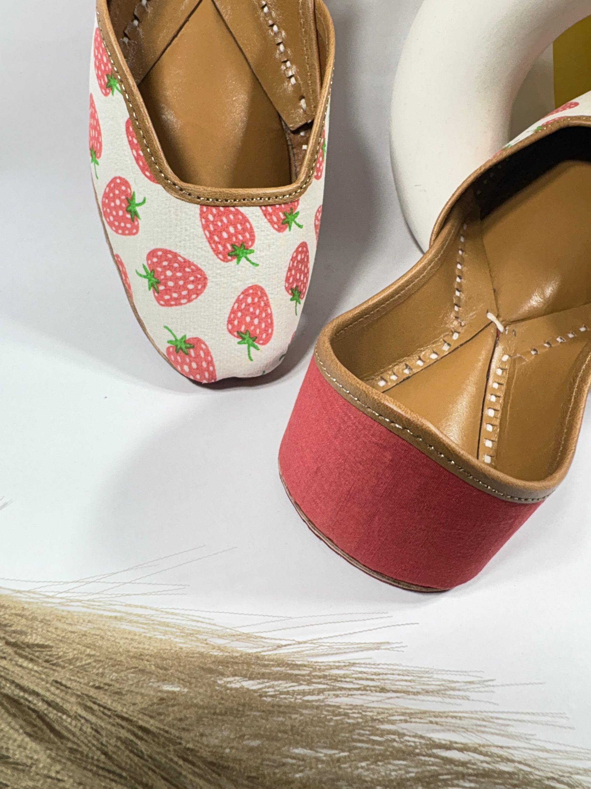 Playful, fresh, and irresistibly cute — these strawberry-print juttis are a treat for your wardrobe.